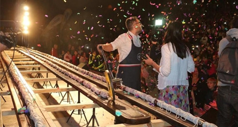 Durante un nuevo Festival de la Sierra, se presentó el ahora “salame más largo del mundo”, con 53,5 metros y un peso que rondó los 160 kilos. Fue trasladado con un camión, y medido frente a una multitud que aplaudió con orgullo el nuevo record tandilense. El evento fue conducido por Juan Braceli, chef en el programa Cocineros Argentinos.